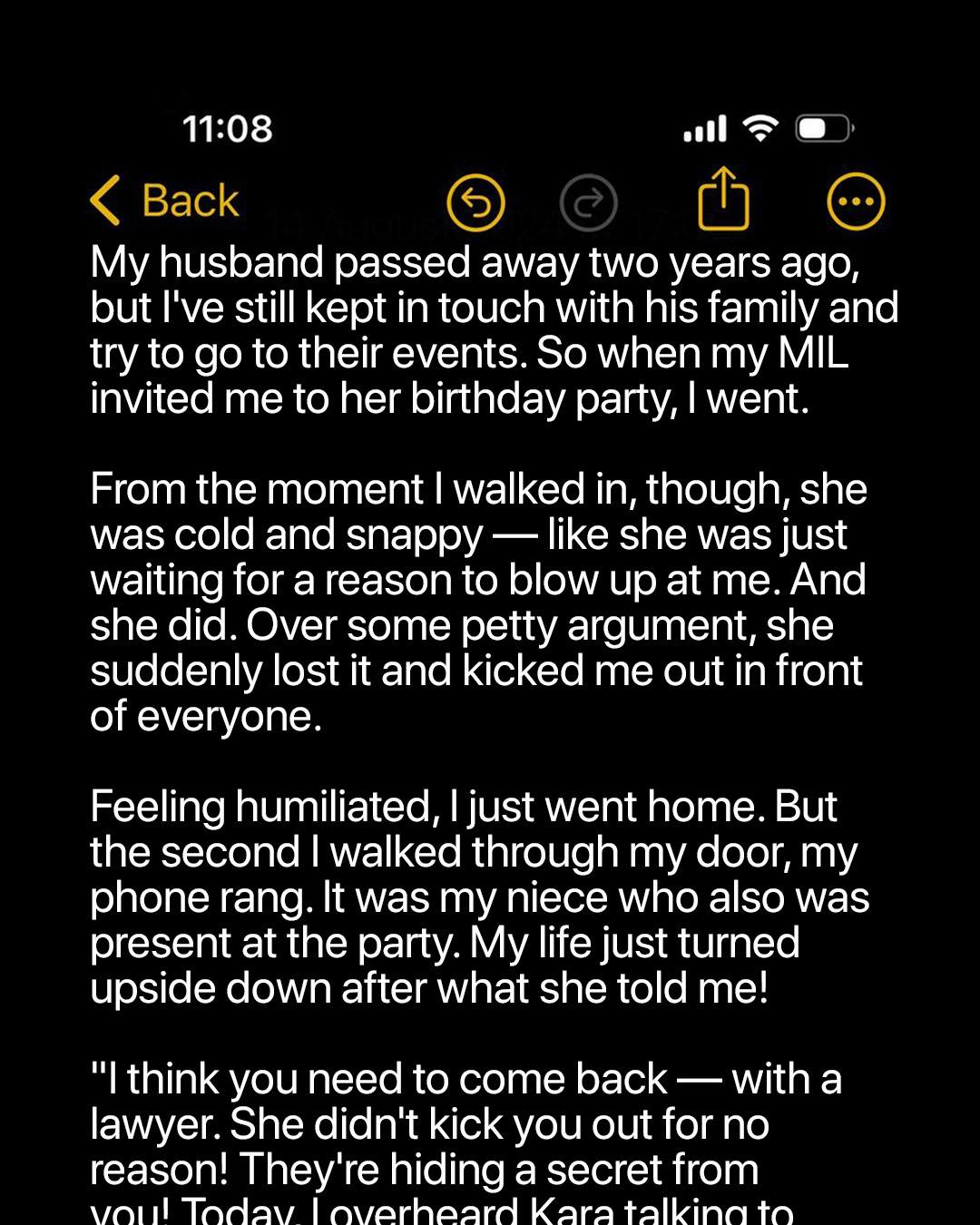 When Melissa’s mother-in-law, Kara, coldly kicked her out of her own birthday party, the sting cut deeper than she wanted to admit. It wasn’t the first time Kara had found a way to humiliate her, but this felt especially cruel. Guests had gone silent, some awkwardly avoiding eye contact, others whispering as Melissa was ushered out as though she were an intruder at a celebration meant for her. Her cheeks burned with embarrassment as she stepped out into the cool night air, her heart pounding in her chest. Kara’s icy words echoed in her ears, each syllable like a sharp blade: “You don’t belong here.”